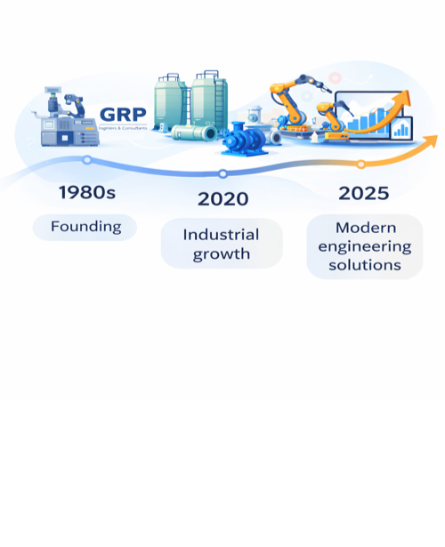 Later in 1992, GRP Engineers specialized in on-site services covering all aspects of turn key based projects and product development including design & engineering, moulds and product development, erection & installation, trial run and commissioning.